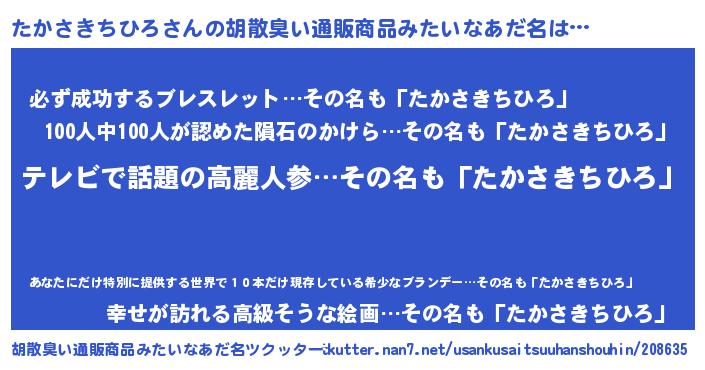 | ヒーロー風カッコイイあだ名 | 『サイバー戦士タカサキチヒロ』 |