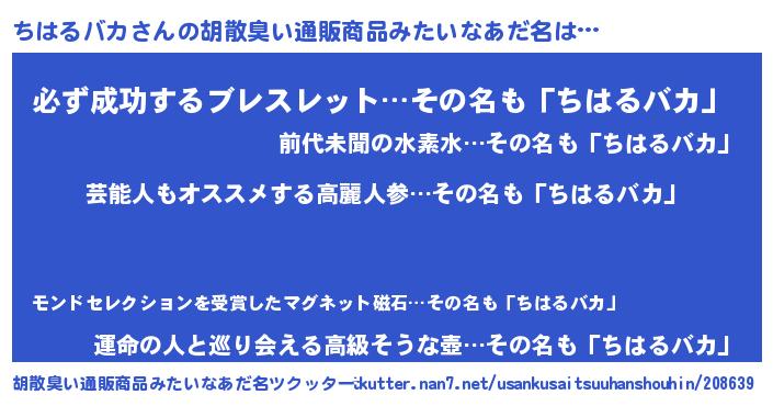 | 意味不明あだ名 | 『自称ちはるバカ』『ペロリンちはるバカ』 |