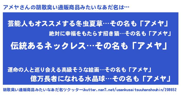 | 恥ずかしいあだ名 | 『アメリンリン』『アメヤデラックス』 |