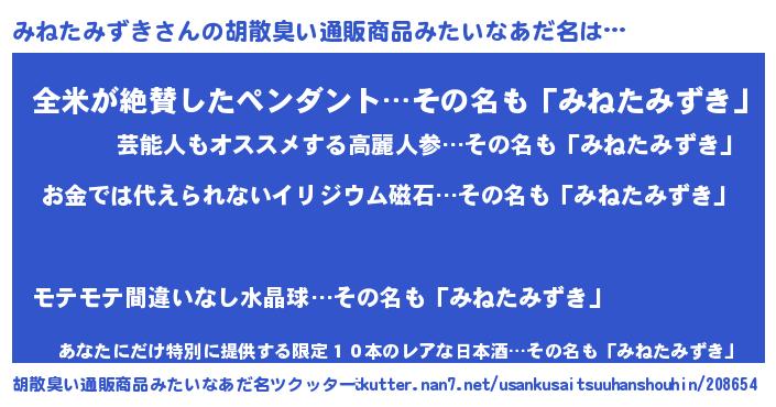 | 意味不明あだ名 | 『眠気覚ましガムみねたみずき味』 |
