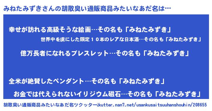 | 肩書あだ名 | 『みねたみずきCEO』『みねたみずき少佐』 |