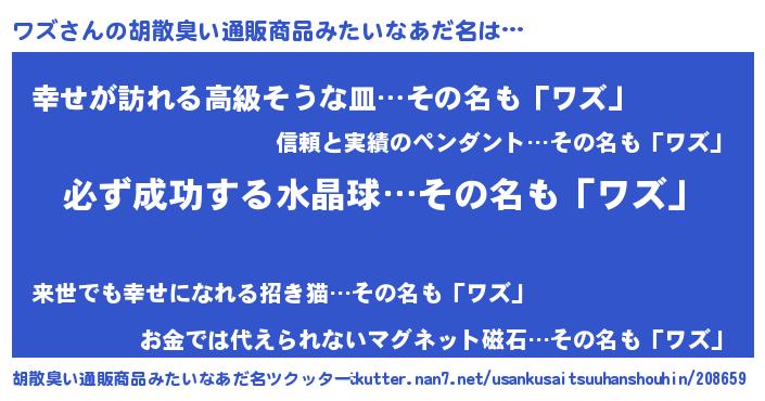| ヘコむあだ名 | 『ワズにゅー』『牛乳』『ワズ太郎』 |
