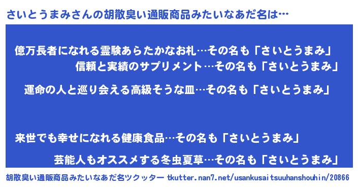 | 意味不明あだ名 | 『さいとうまみフォーエバー』 |