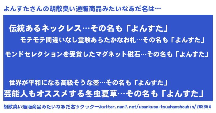よんすたさんの胡散臭い通販商品みたいなあだ名をツクッター!