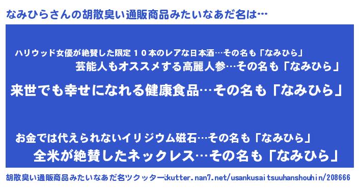 | 意味不明あだ名 | 『永久保存なみひら』『自称なみひら』 |