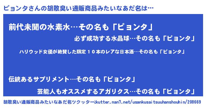 | 意味不明あだ名 | 『住所不定無職ピョンタ(59歳)』 |