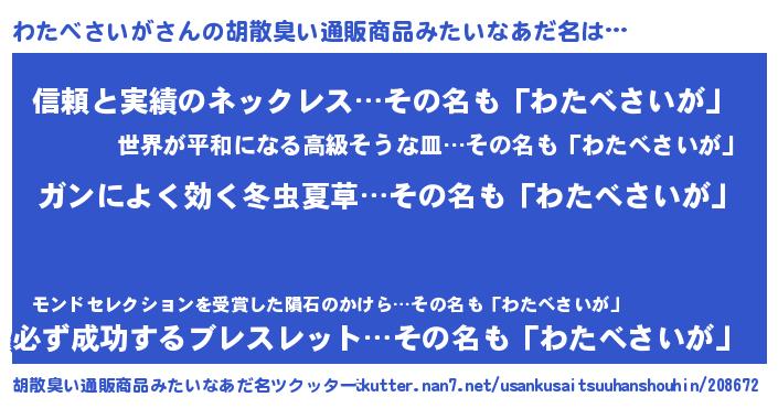 | 伝説のあだ名 | 『孤高の遊び人わたべさいが』 |