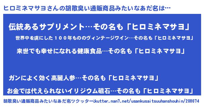 | 料理風あだ名 | 『ヒロミネマサヨとほうれんそうの和風グラタン』 |