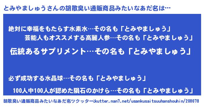 | 男性向けラノベタイトル風あだ名 | 『ダンジョンにとみやましゅうを求めるのは間違っているだろうか』 |
