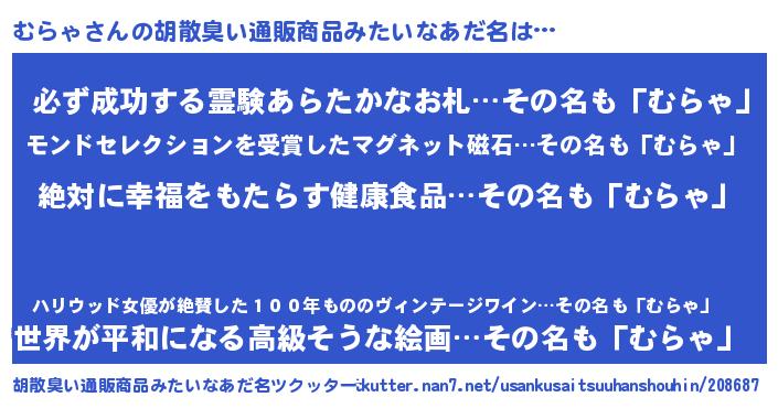 | ヘコむあだ名 | 『むらゃ(爆)』『むらっふぃ~』 |