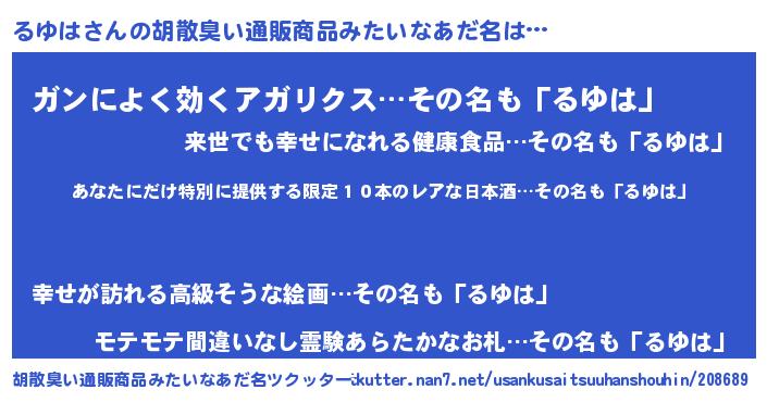 | ヘコむあだ名 | 『るゆふぇ~』『るゆは(爆)』『豆乳』 |