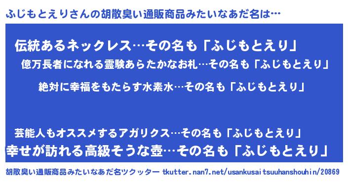 | ヘコむあだ名 | 『ふじもとえり(遠い目)』『ふじっ子』 |