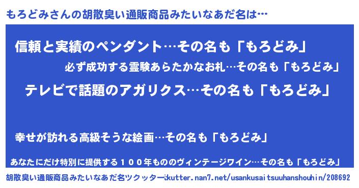| 男性向けラノベタイトル風あだ名 | 『転生したらもろどみだった件』 |