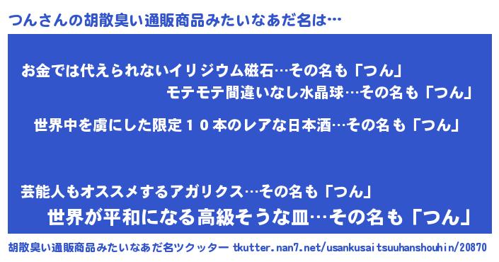 | ヒーロー風カッコイイあだ名 | 『仮面ツンダー』『慈愛の使者つん』 |
