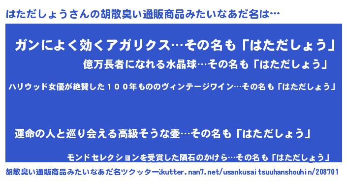 | 意味不明あだ名 | 『住所不定無職はただしょう(12歳)』 |