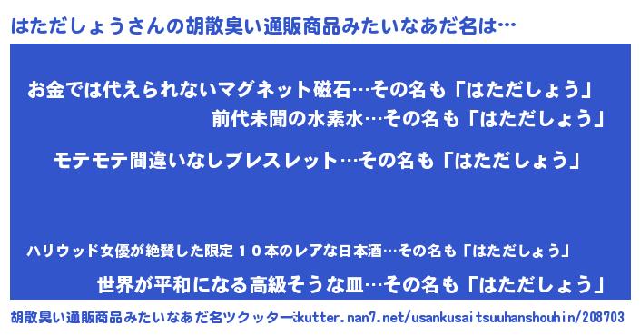 | 肩書あだ名 | 『はただしょう社長』『はただしょう大尉』 |