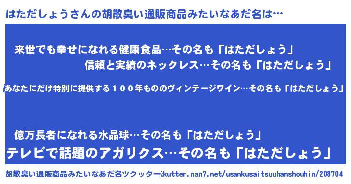 | 恥ずかしいあだ名 | 『はたちん』『ハタダショウデラックス』 |