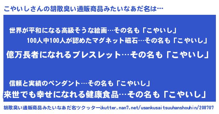 | ヘコむあだ名 | 『こやふぇ~』『なまこ酢』 |