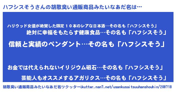 | 意味不明あだ名 | 『とにかく怪しいハフシスそう』 |