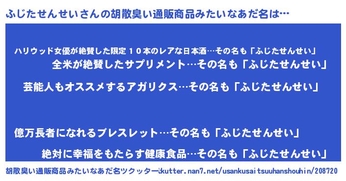 | 男性向けラノベタイトル風あだ名 | 『Re:ふじたせんせいから始める異世界生活』 |
