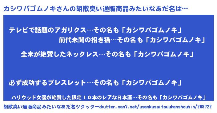 | 意味不明あだ名 | 『とにかく怪しいカシワバゴムノキ』 |