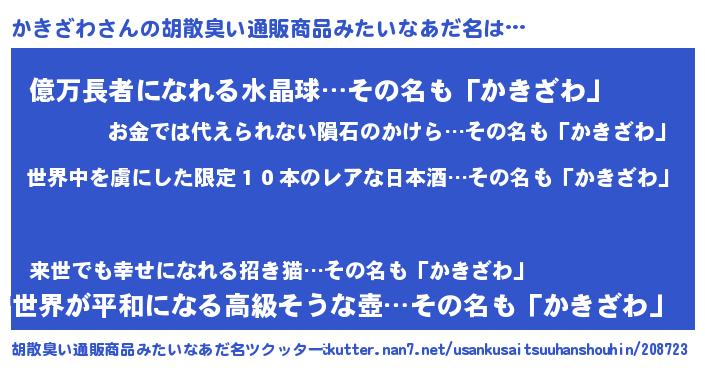 | 男性向けラノベタイトル風あだ名 | 『この素晴らしい世界にかきざわを!』 |