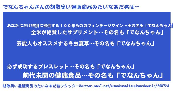 | 男性向けラノベタイトル風あだ名 | 『Re:でなんちゃんから始める異世界生活』 |