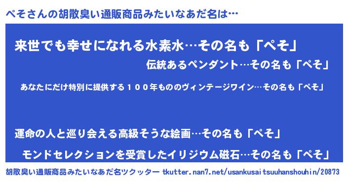 | 意味不明あだ名 | 『住所不定無職ぺそ(5歳)』『永久保存ぺそ』 |