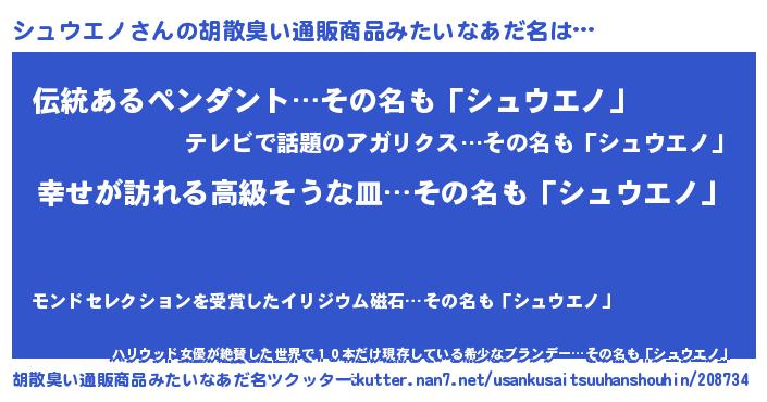 | 欧米人風あだ名 | 『シュウエノクリステル』 |