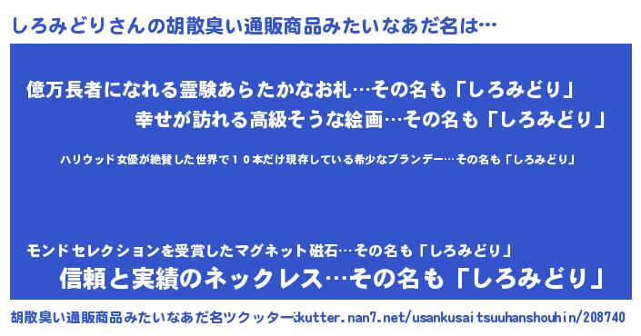 | 意味不明あだ名 | 『住所不定無職しろみどり(91歳)』 |