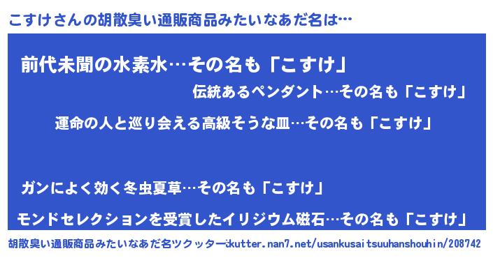 | 女子向けラノベタイトル風あだ名 | 『こすけの婚約者』『こすけ恋絵巻』 |