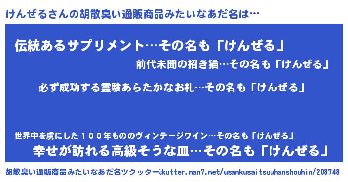 | 男性向けラノベタイトル風あだ名 | 『けんぜるの憂鬱』 |