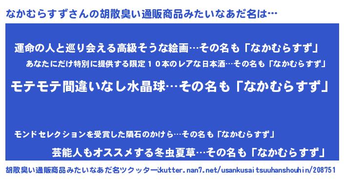 | 男性向けラノベタイトル風あだ名 | 『なかむらすずに滅ぼされるだけの簡単なお仕事です』 |