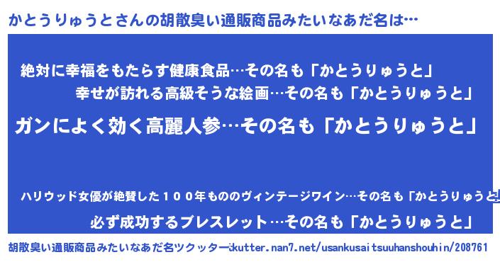 | 肩書あだ名 | 『かとうりゅうと閣下』 |