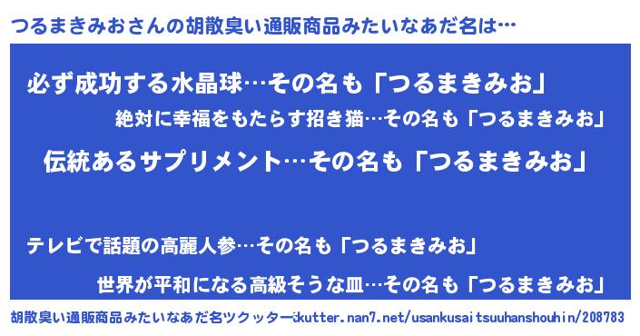 | 意味不明あだ名 | 『とにかく怪しいつるまきみお』 |