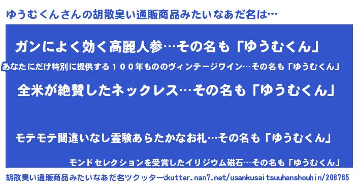 | 女子向けラノベタイトル風あだ名 | 『ゆうむくん様がみてる』 |