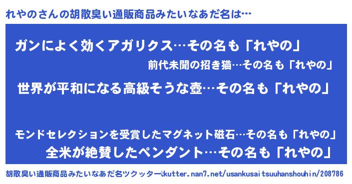 | 意味不明あだ名 | 『もやし科れやの属』『自称れやの』 |