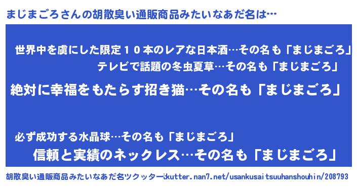 | 男性向けラノベタイトル風あだ名 | 『まじまごろという概念が存在しない退屈な世界 』 |