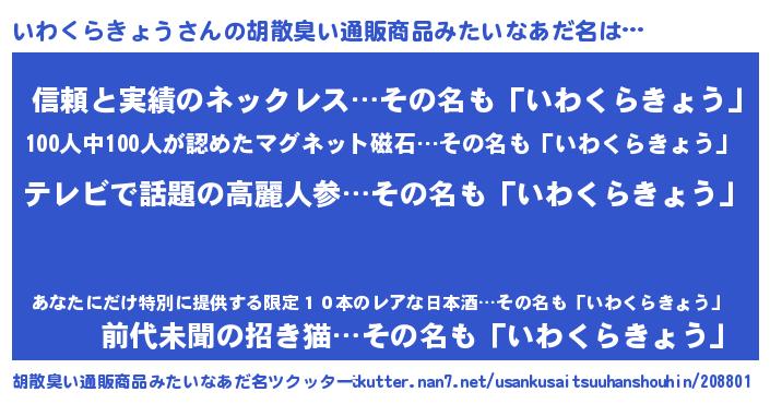 | 意味不明あだ名 | 『自称いわくらきょう』 |