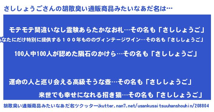| ピコ太郎風あだ名 | 『ササ太郎』『サコ六郎』『ピコサ郎』 |