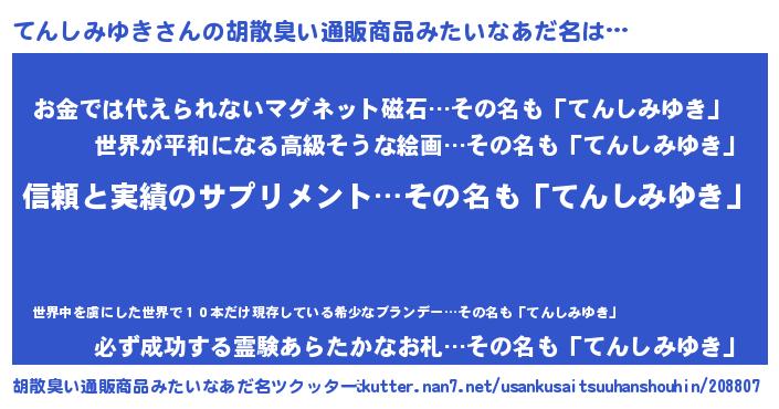 | 欧米人風あだ名 | 『ウサインてんしみゆき』 |