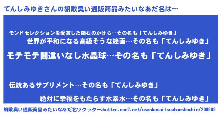 | ヘコむあだ名 | 『てんにゅー』『てんしみゆき(爆)』 |