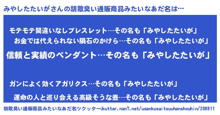 | 意味不明あだ名 | 『とにかく怪しいみやしたたいが』 |