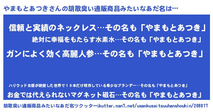 | ヘコむあだ名 | 『やまを』『やまもとあつき(爆)』 |