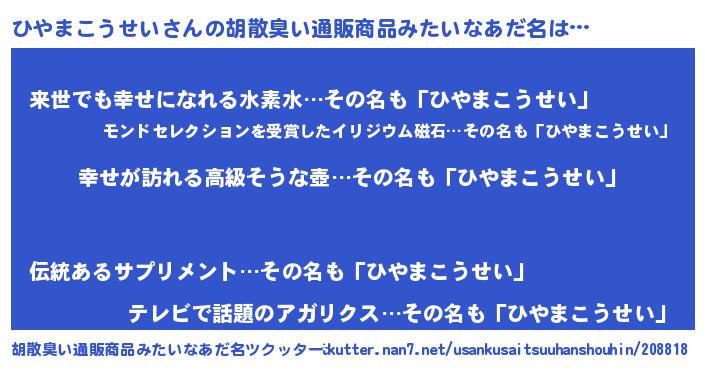 | 意味不明あだ名 | 『ひやまこうせいフォーエバー』 |