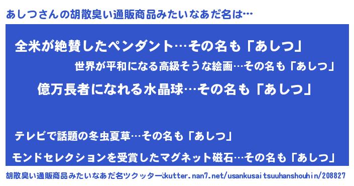 | ヘコむあだ名 | 『あしふぇ~』『あしぷりん』 |