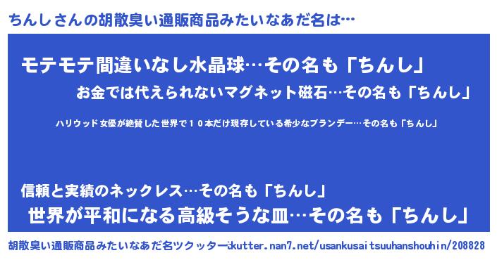 | 意味不明あだ名 | 『住所不定無職ちんし(79歳)』 |