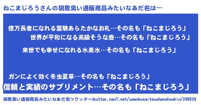 | ヘコむあだ名 | 『ねこまじろう(震え声)』『ねこもー』 |