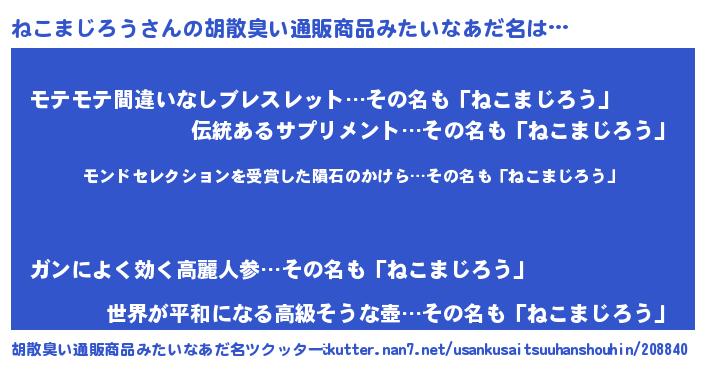 | 意味不明あだ名 | 『眠気覚ましガムねこまじろう味』 |