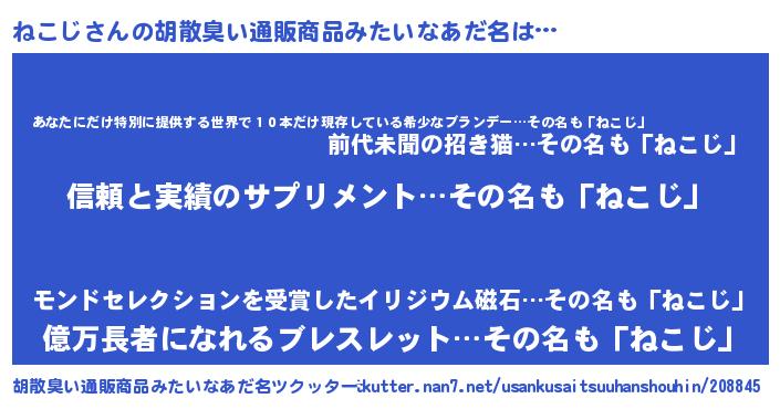 | 欧米人風あだ名 | 『アンジェラ・ねこじ』『ウサインねこじ』 |